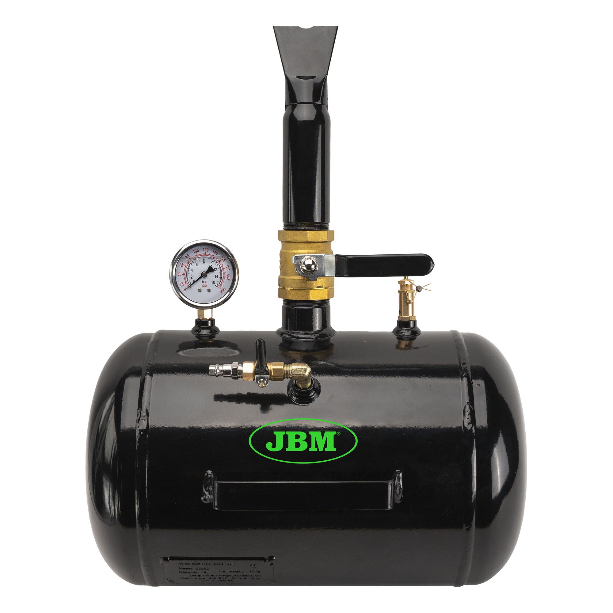 Volumen: 18L Presión de trabajo: 6-8 BAR (87-116 PSI) Presión máxima: 10 BAR (145PSI) Cumple con: 2014/68/EU, 2014/29/EU