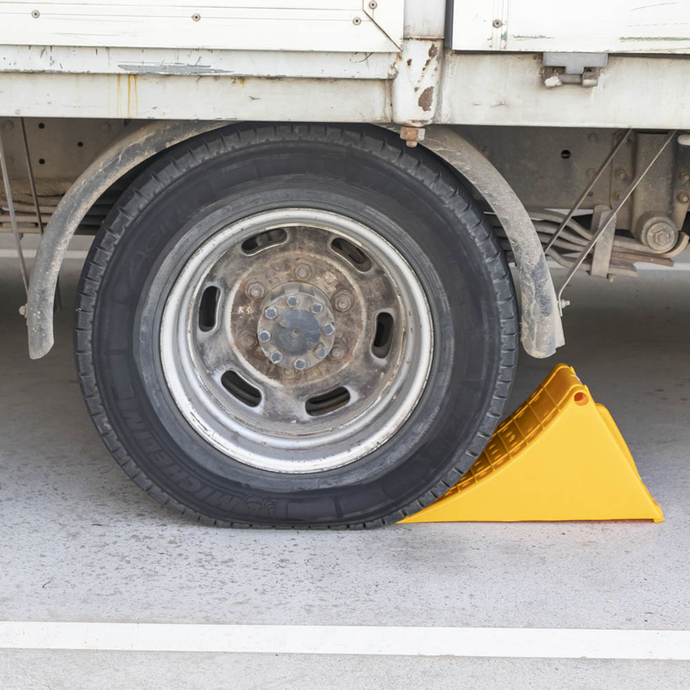 Cuña de plástico con una tira de acero en la parte base posterior que mejora su fijación y evita el deslizamiento cuando sobre el pavimento hay hielo o arena. Capacidad máxima: 30T De color amarillo intenso para detectarlo visualmente de manera fácil y rápida cuando se está utilizando. Peso ligero (1,7kg): fácil de transportarlo y manejarlo. Grosor: 6mm. Tamaño: 470x200x230mm.