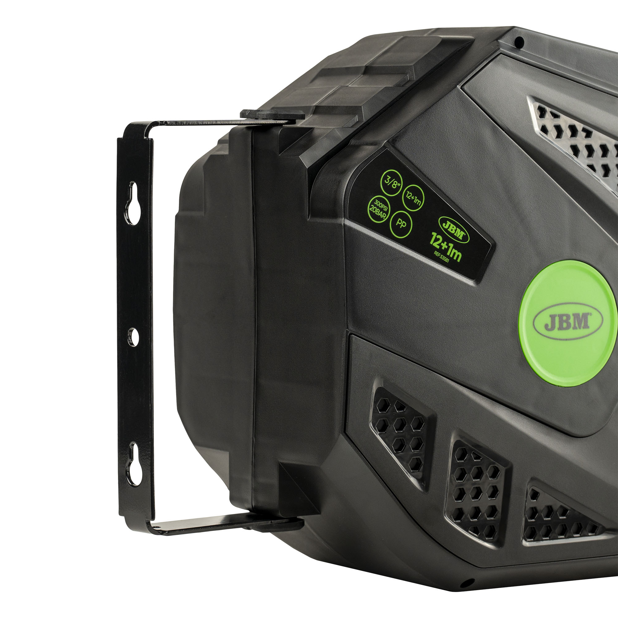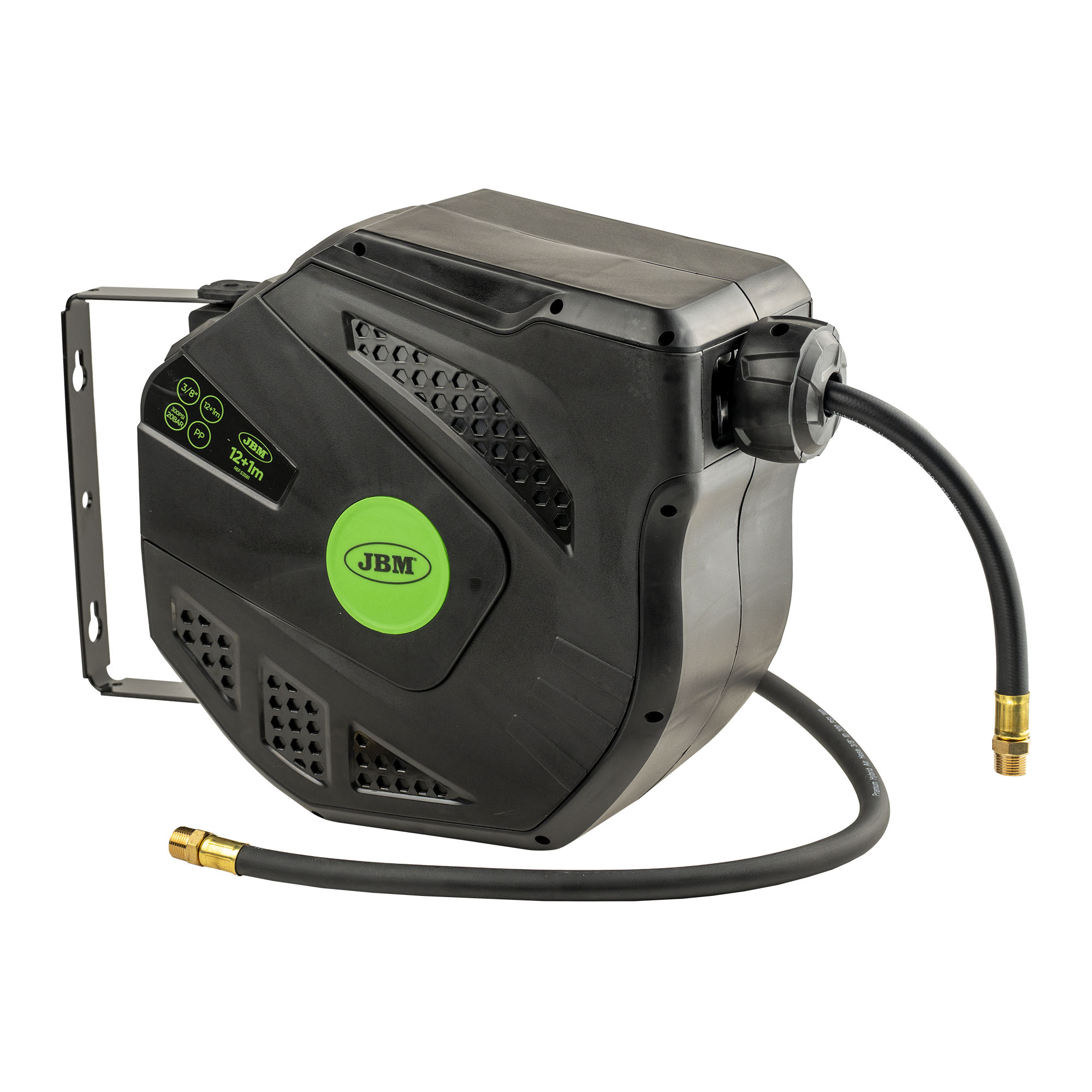 Este nuevo diseño JBM de 13 metros destaca por su estructura robusta y diseño mejorado, pensado para ofrecer mayor comodidad y durabilidad en el uso diario. Incorpora un sistema automático de rebobinado suave y seguro, que facilita el enrollado de la manguera sin esfuerzo y evita torsiones o enredos. Especificaciones: · Presión de trabajo: 150 PSI · Presión de rotura: 450 PSI · Tamaño de la manguera: 3/8″ (9,5 × 15,2 mm) · Longitud de la manguera: 12 + 1 metros · Color: Verde