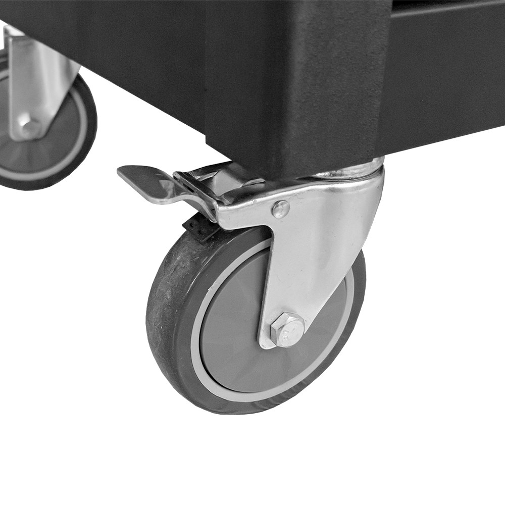 DISEÑO: – Sistema de cierre centralizado. – Con 2 ruedas giratorias y 2 rígidas. – Pestaña de cierre individual por cajón. – 7 Cajones: x5 pequeños y x2 grandes. – Medidas totales: 775x466x960mm – Medidas de los cajones: · x5 – 533x400x74mm · 2x – 533x400x151’5mm