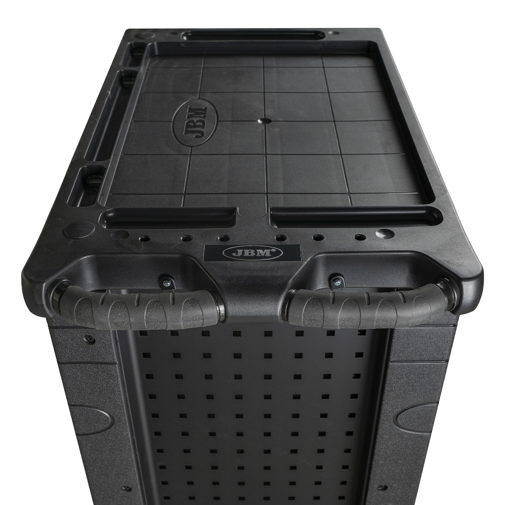 Este carro de herramientas de taller con un diseño funcional y práctico, ofrece una estructura organizada que facilita el acceso a todas sus herramientas. Equipado con ocho cajones (un cajón grande y siete pequeños), así como un panel lateral perforado para colgar herramientas y dos ruedas giratorias. Además, la bandeja superior incluye compartimentos específicos para herramientas y piezas, permitiéndole tener todo al alcance de la mano y optimizando su productividad en cualquier tarea.
