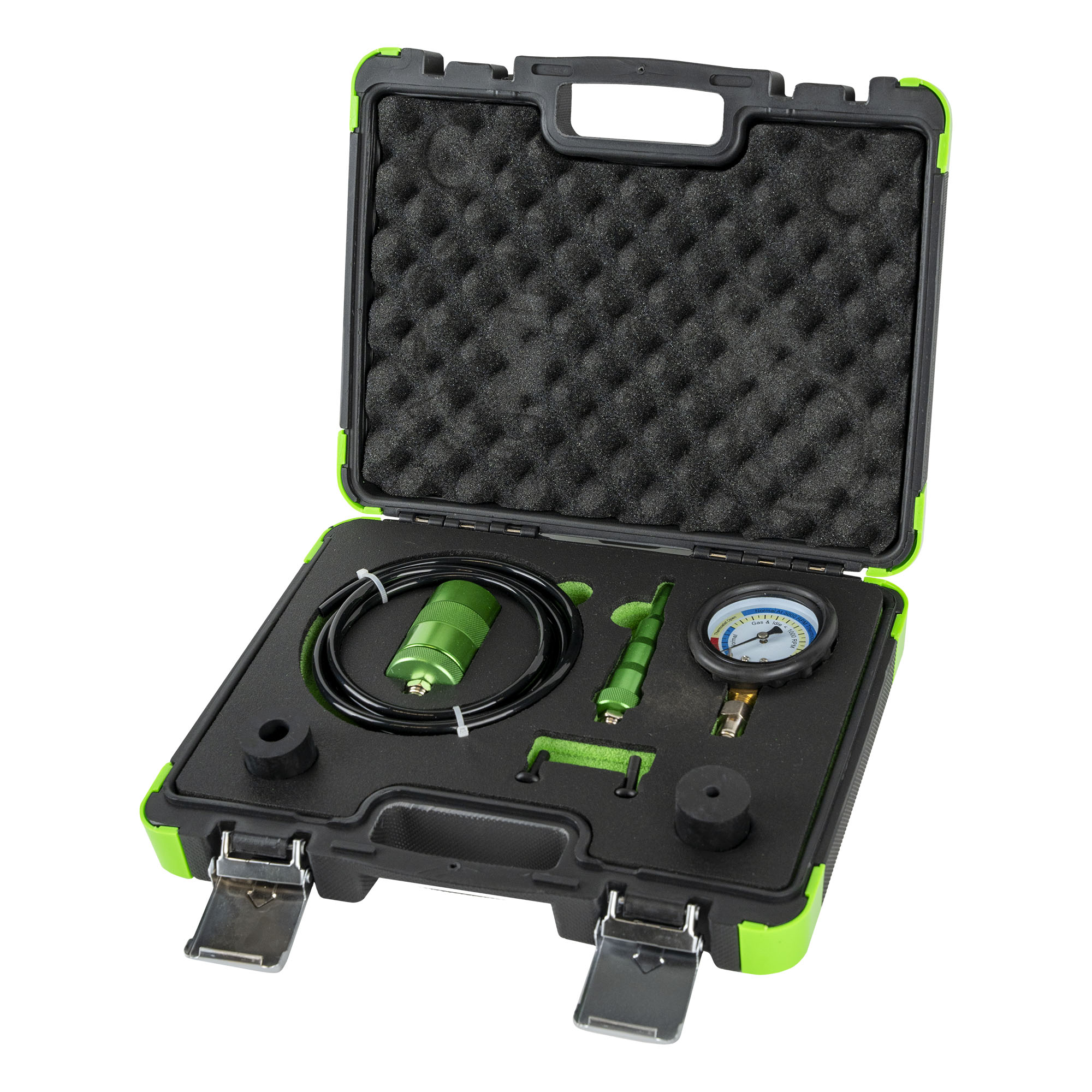 Indica el flujo del refrigerante midiendo los aumentos de presión que ocurren debido al flujo del refrigerante alrededor del bloque. Para probar las bombas de agua del sistema de enfriamiento in situ mientras el motor está en funcionamiento. ESPECIFICACIONES: – Alcance de aplicación: 5-13 mm – Salida Rango de propagación de presión paralela: 5-11.5 mm – Controlador Hexágono externo: 17 mm