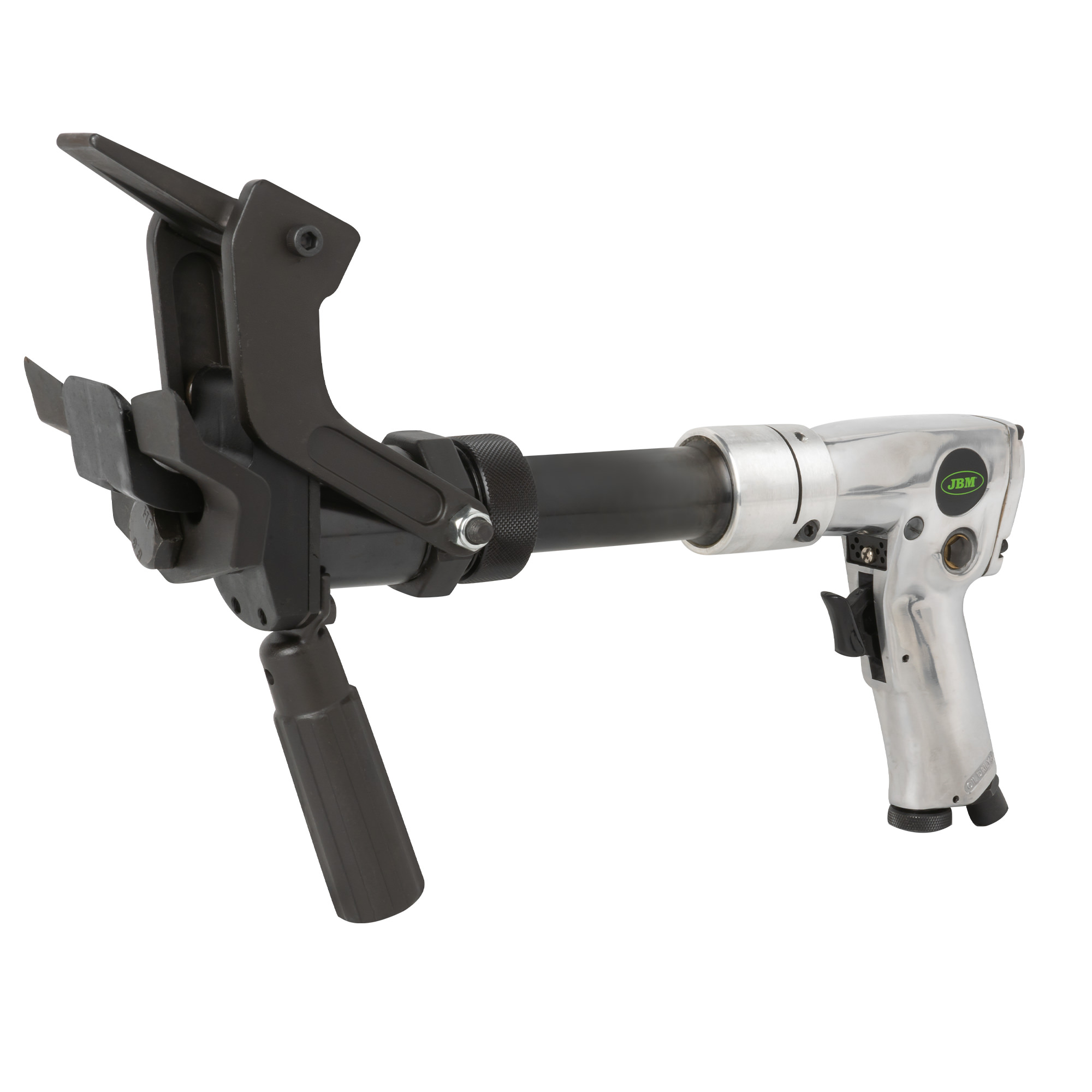 Destalonador neumático profesional especialmente diseñado para su uso en neumáticos agrícolas, ATV, pequeños OTR y la mayoría de neumáticos de camión. Extremadamente rápido: ahorra tiempo frente a los rompe-talones hidráulicos convencionales. Ideal para trabajar en el neumático sin desmontar la rueda: separa el talón del neumático de la llanta mediante palanca. Permite cambiar la rueda fuera del taller, realizando reparaciones in situ. Especificaciones: · Longitud: 396 mm (9,05”) · Peso: 4,6 kg (10,2 lb) · Entrada de aire: 1/4” NPT · Diámetro de la manguera: 10 mm (3/8”) I.D. · Presión de aire: 90 PSI (6,2 bar) · Consumo medio de aire: 4 CFM (113 l/min) · Velocidad en vacío: 10.000 RPM · Carrera del actuador: 80 mm (3,1”) · Apertura de la mordaza: 68 mm (2,7”)