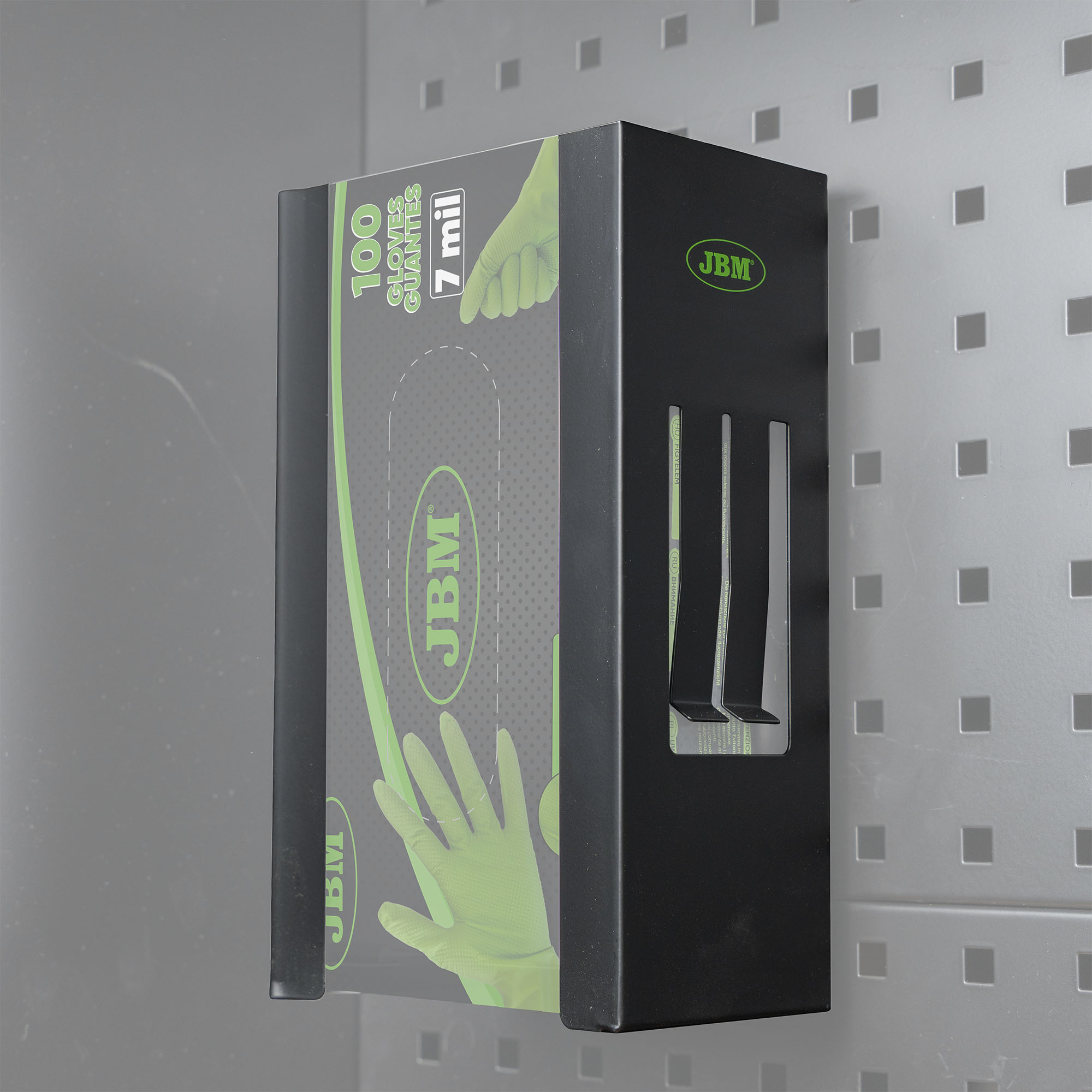 Soporte versátil y cómodo dispensador de guantes. Sus imanes permiten colocarlo en múltiples superfícies, como por ejemplo carros o mobiliario de trabajo.