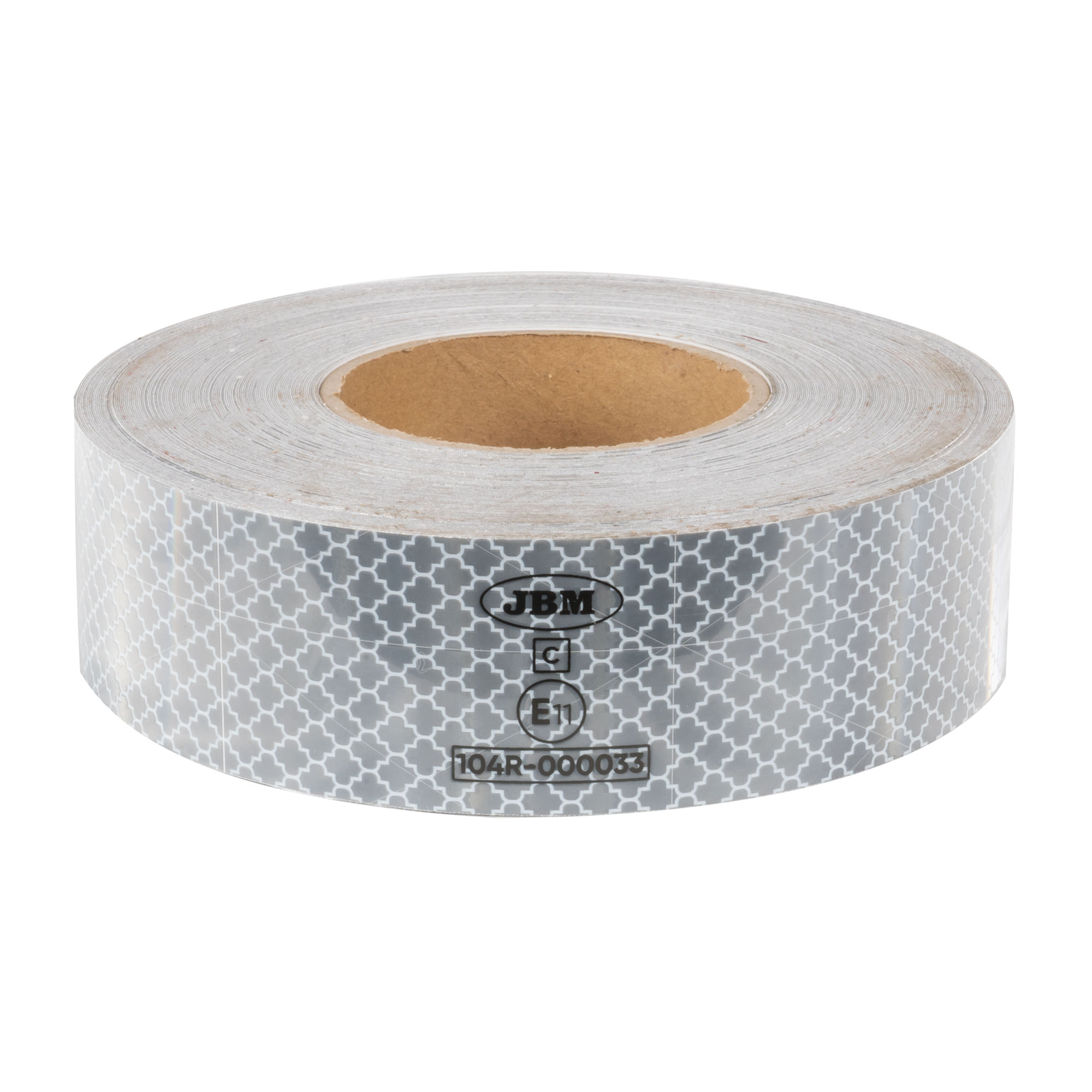 Aplicación a partir del 10 de Julio de 2011 según modificación del Reglamento General de Vehículos, aprobado por el Real Decreto 2822/1998, de 23 Dic. de. 2010 Homologación : REGLAMENTO CEPE/ONU 104R DIMENSIONES Bobinas indivisibles de 50 m Ancho : 50 mm BLANCO