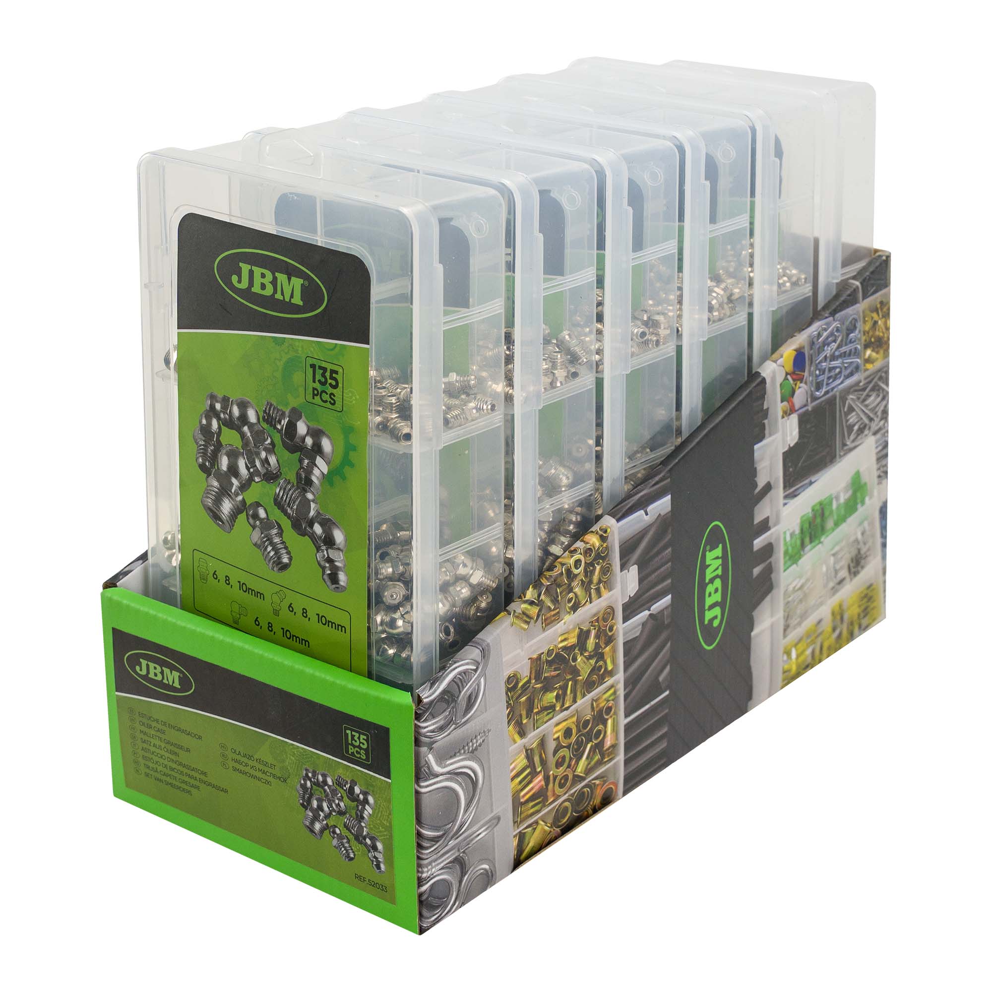 Ref. – CONTENIDO: Ángulo recto: 10868 – 6mm – 20 10869 – 8mm – 15 10870 – 10mm – 10 Ángulo de 45º 10871 – 6mm – 20 10872 – 8mm – 15 10873 -10mm – 10 Ángulo de 90º 10874 – 6mm – 20 10875 – 8mm – 15 10876 – 10mm – 10