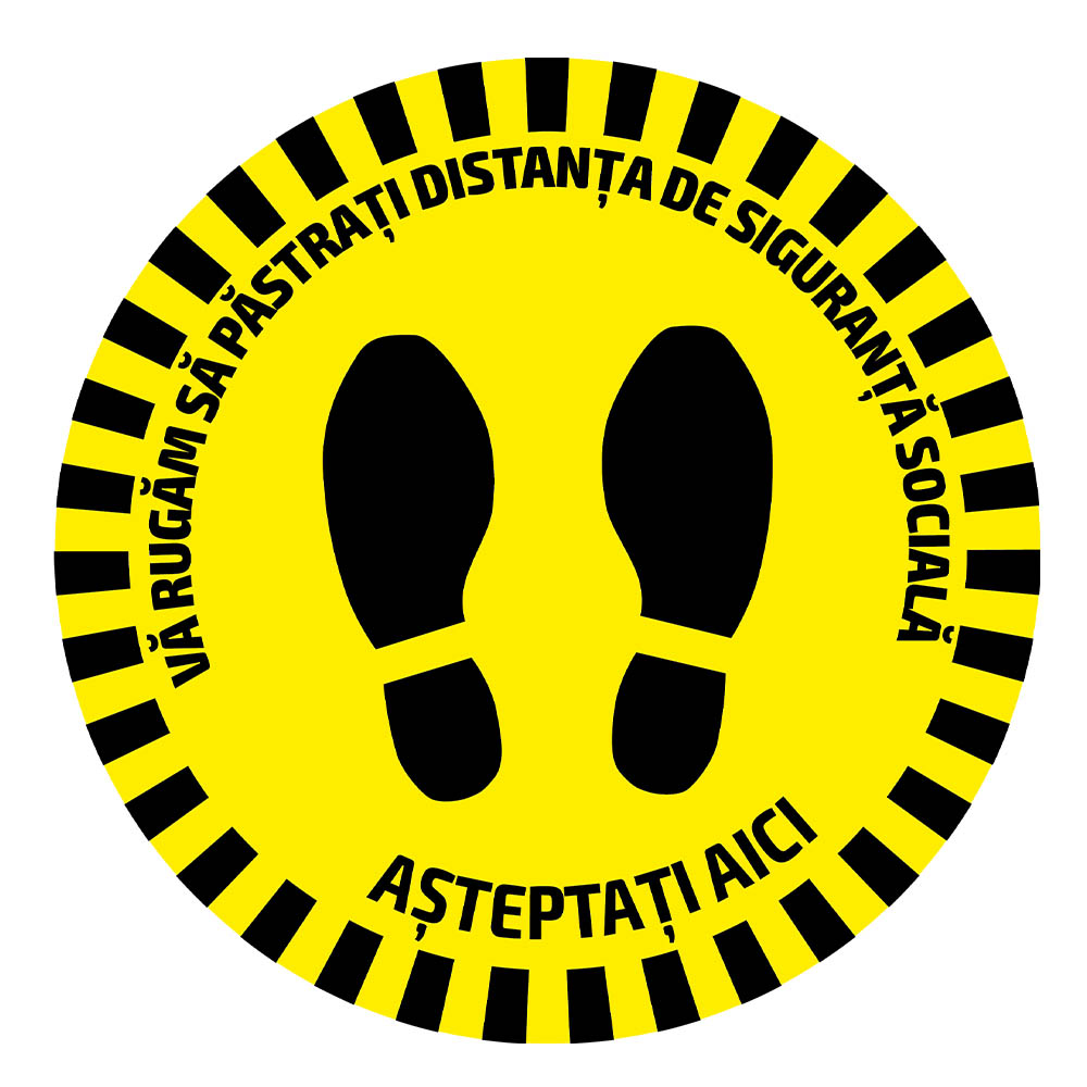 ETIQUETA ADHESIVA REDONDA DE SEÑALIZACIÓN PARA SUELOS – DISTANCIA DE SEGURIDAD