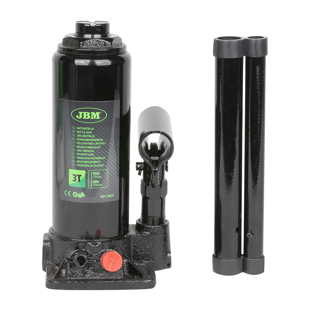 El Gato de Botella de 3T es una herramienta compacta y potente, ideal para levantar vehículos de hasta 3 toneladas de manera segura y eficiente. Su altura mínima de 194 mm y máxima de 371 mm le permite adaptarse a distintos tipos de automóviles y camionetas ligeras. Fabricado con materiales de alta resistencia, garantiza estabilidad, durabilidad y un uso confiable en todo momento. Recomendaciones de uso: · Utilizar únicamente sobre superficies planas y firmes. · Asegurar el vehículo con el freno de mano y calzos antes de elevarlo. · Colocar el gato en los puntos de apoyo recomendados por el fabricante del vehículo. · No permanecer debajo del vehículo mientras esté sostenido solo por el gato. usar soportes adicionales (torres de seguridad). · No sobrepasar la capacidad máxima de 3 toneladas.