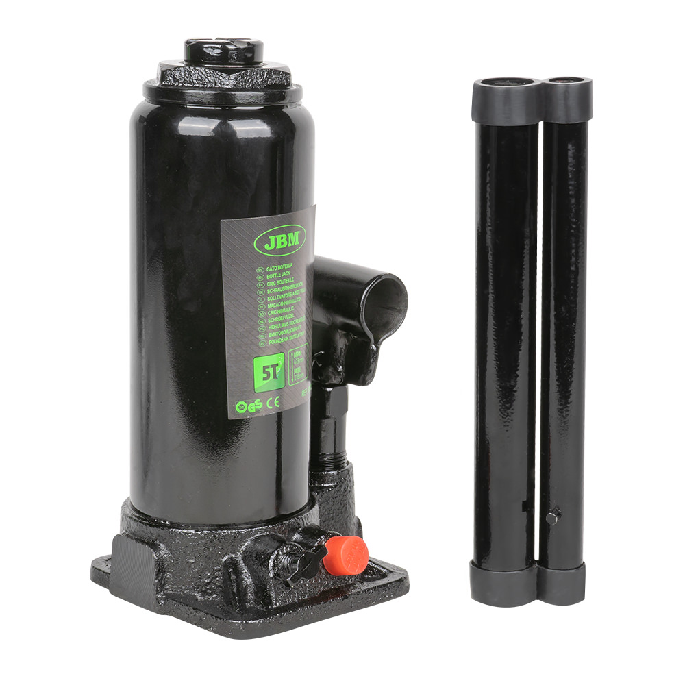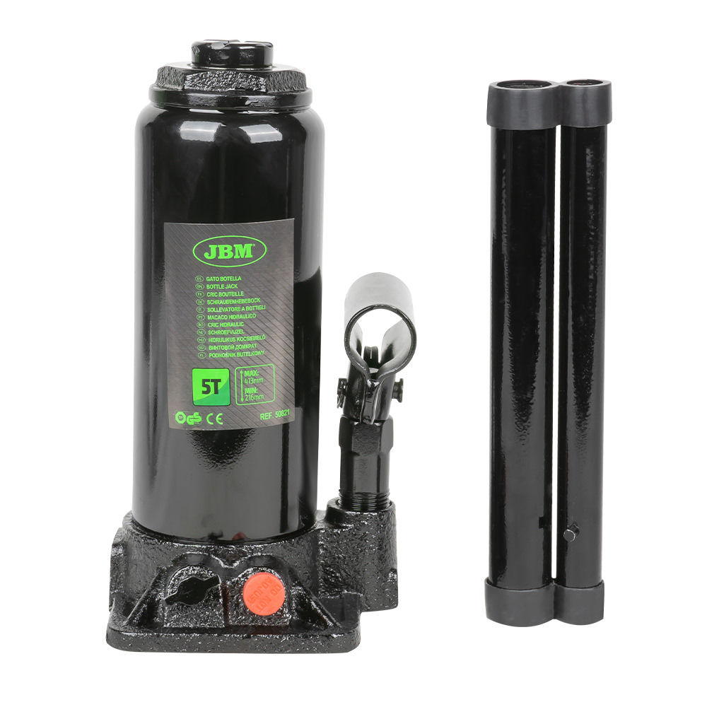 El Gato de Botella de 5T es una herramienta robusta, compacta y potente, ideal para levantar vehículos de hasta 5 toneladas de manera segura y eficiente. Su altura mínima de 216 mm y máxima de 413 mm le permiten adaptarse a una amplia variedad de automóviles, camionetas y vehículos de carga ligera. Fabricado con materiales de alta resistencia, ofrece gran estabilidad, durabilidad y un rendimiento confiable en todo momento. Recomendaciones de uso: · Utilizar únicamente sobre superficies planas, firmes y estables. · Asegurar el vehículo con el freno de mano y calzos antes de elevarlo. · Colocar el gato en los puntos de apoyo recomendados por el fabricante del vehículo. · No permanecer debajo del vehículo mientras esté sostenido solo por el gato. utilizar soportes adicionales (torres de seguridad). · No exceder la capacidad máxima de carga de 5 toneladas.