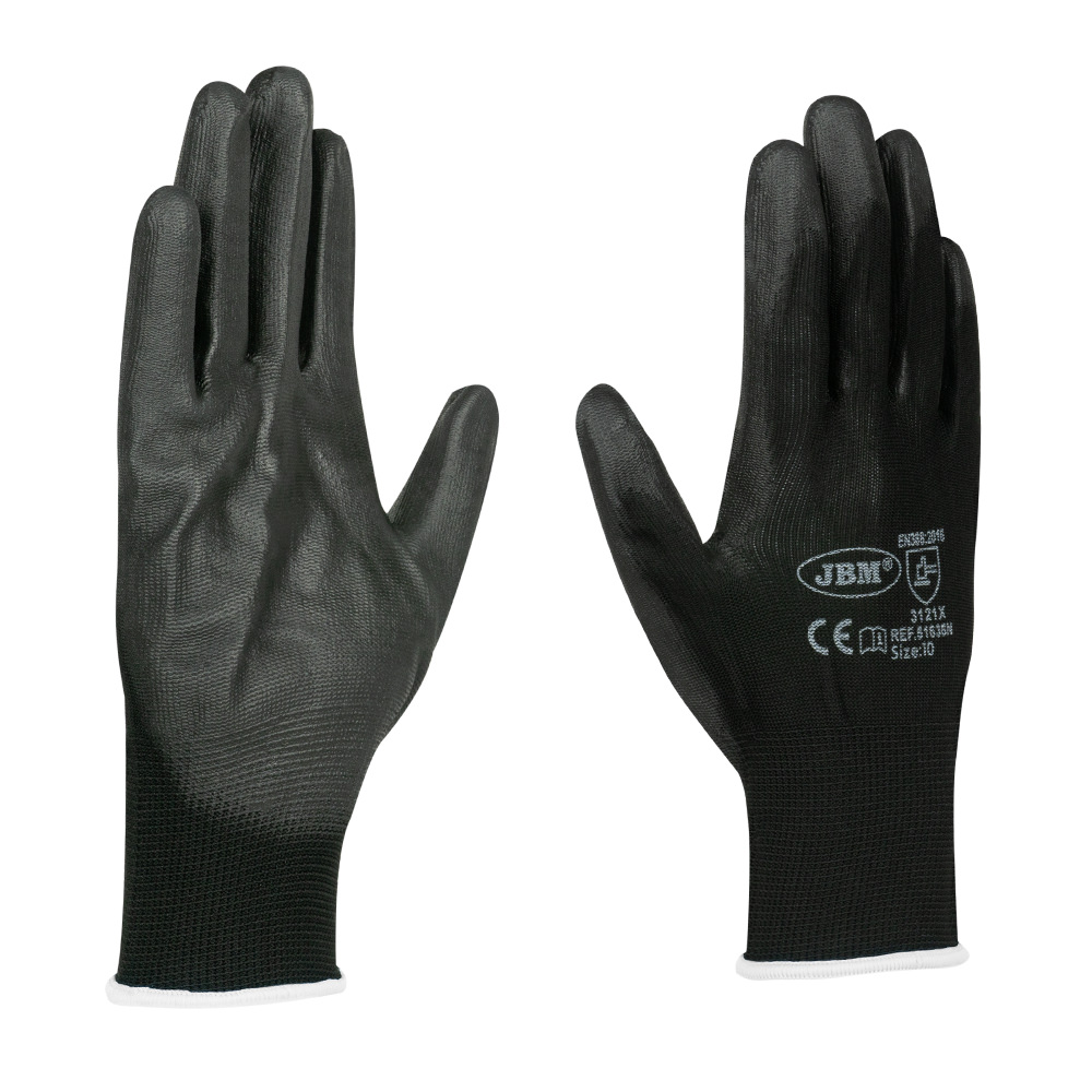 Guantes de Trabajo con Palma Reforzada de Poliuretano – Talla 9 – Color Negros · Guantes de alta calidad diseñados para proporcionar protección, confort y rendimiento superior en entornos laborales exigentes. · Palma reforzada con poliuretano (PU): Garantiza un agarre excelente y alta resistencia al desgaste, ideal para trabajos con superficies secas o ligeramente húmedas. · Diseño ergonómico y revestimiento liso: Ofrecen un ajuste perfecto, brindando flexibilidad y comodidad durante su uso prolongado. · Talla 9: Proporciona un ajuste seguro para la mayoría de las manos, asegurando eficacia y comodidad. · Protección eficaz: Ofrecen una excelente protección contra riesgos mecánicos en actividades como montaje, manipulación, mantenimiento, y trabajos industriales en general. Cumple con los estándares de calidad internacionales: · EN ISO 21420:2020. · EN 388:2016+A1:2018.