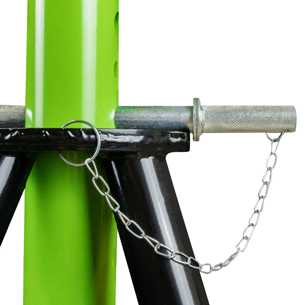 Juego de caballetes de alta resistencia con capacidad de carga de 10 toneladas por pareja. Altura ajustable entre 482 y 775 mm, ideales para soportar vehículos pesados de forma segura durante tareas de mantenimiento. Estructura robusta y base amplia para máxima estabilidad.