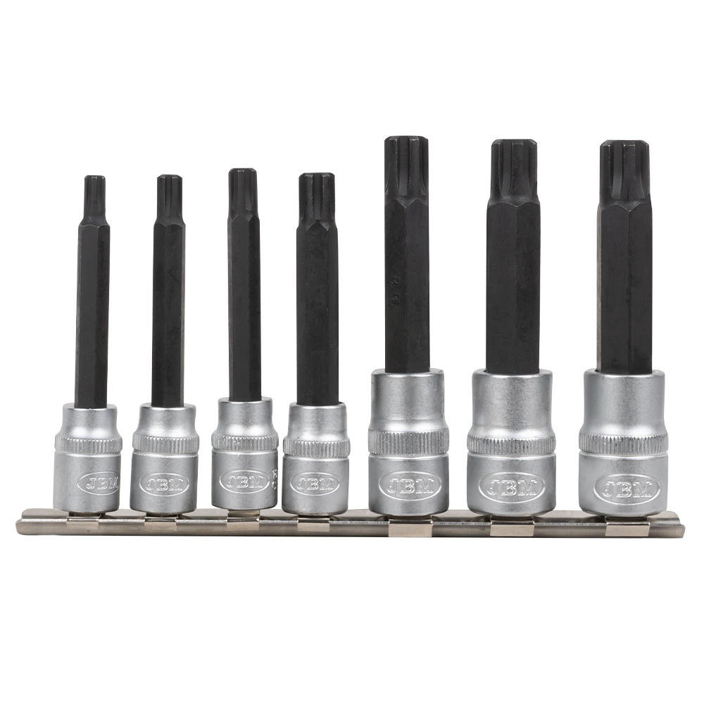 Blister metálico con guía de diferentes puntas ribe: · 1/2″ 100 mm – M12, M13, M14. · 3/8″ 90 mm – M6, M7, M8, M10.