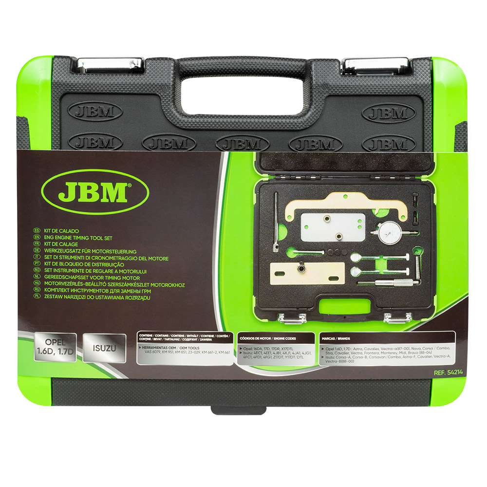 Herramientas OEM: VAS 6079, KM 951, KM 851, 23-029, KM 661-2, KM 661 Códigos de motor: ●Modelos OPEL: ASTRA, CAVALIES, VECTRA-A(87-00), ISUZU, NOVA, CORSA / COMBO, STRA, CAVALIER, VECTRA, FRONTERA, MONTEREY, MIDI, BRAVA (88-04) ●Motores OPEL : 16DA, 17D, 17DR, X17DTL ●Motores ISUZU : 4EC1, 4EE1, 4JB1, 4XJ1, 4JA1, 4JG1, 4FC1, 4FD1, 4FG1, Z17DT, Y17DT/DTL Aplicaciones: Motores Diésel Opel Astra, Corsa 1.6d 1.7d & Isuzu