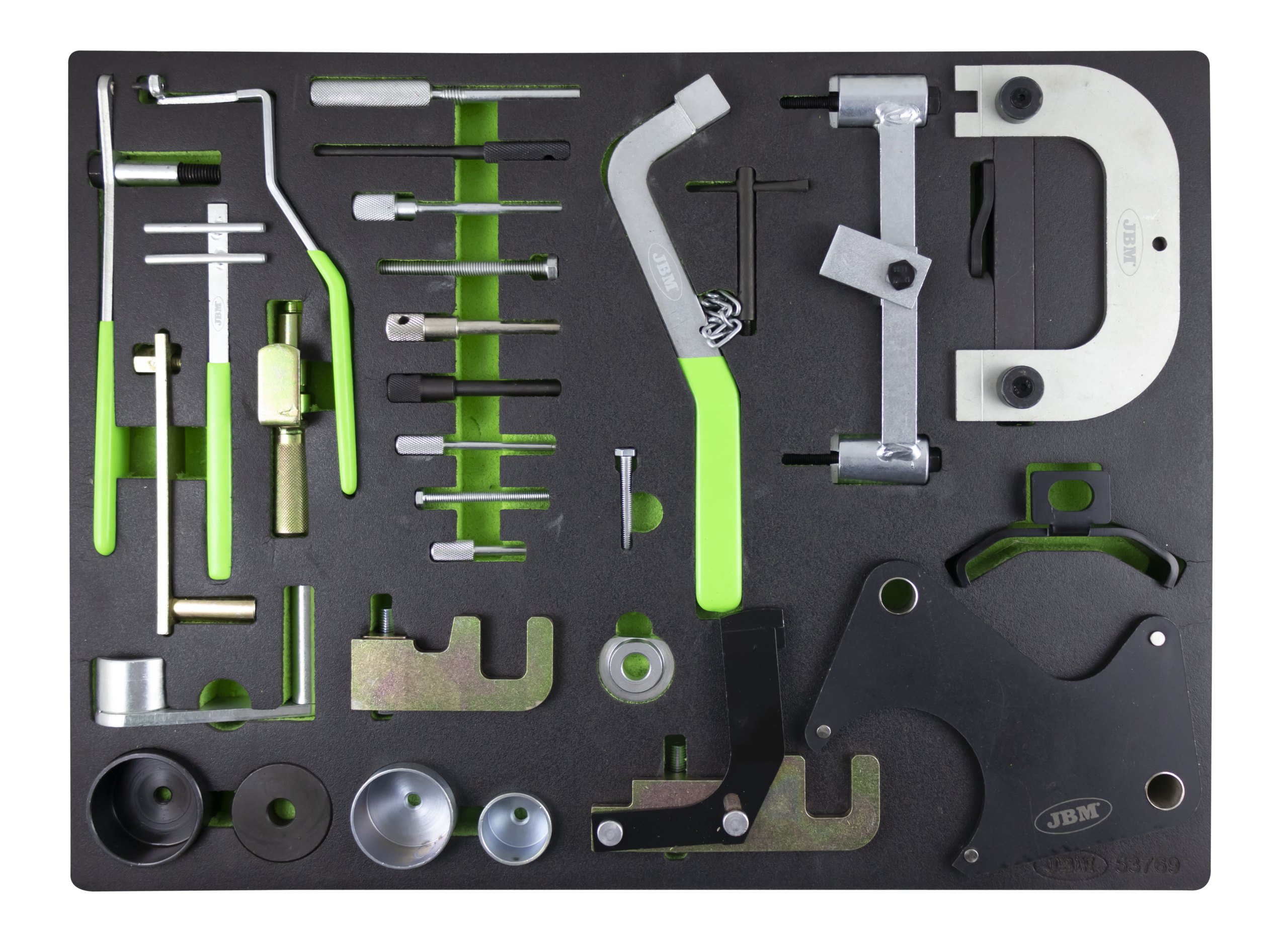 Para motores common rail diésel. Funciones Clavar el volante / árbol de levas / cigüeñal / bomba de inyección / cambiar la correa de distribución o la reparación de motor. MARCAS: – RENAULT Avantime, Clio, Espace, Kangoo, Laguna, Master, Megane, Modus, Scenic, Twingo, Traffic. – OPEL/VAUXHALL Movano, Vivaro. – DACIA Dokker, Duster, Logan, Sandero. – NISSAN Almera, Interstar, Kubistar, Micra, Note, Primera, Qashqai. – VOLVO S40, V40. CÓDIGOS MOTOR: – Motores gasolina: 2.0 16V / 2.5 20V / 1.4 / 1.6 16V / 1.8 / 2.0 16V / 1.2 / 1.7 / 1.8 / 2.0 16V / 2.2. – Motores diésel: 1.9 / 2.5 / 2.8
