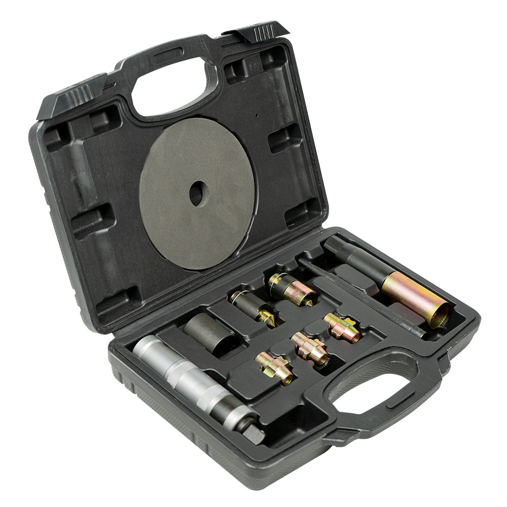 Kit fácil de utilizar, capaz de desmontar cualquier tuerca de ruedo con bloqueo. El kit incluye una cubierta que protege la rueda contra cualquier daño. Muy eficaz y una herramienta de taller imprescindible. Contiene dos tamaños de cuchillas de corte de impacto para adaptarse a la mayoria de tuercas de la rueda de bloqueo mediante el corte en el borde exterior. También se incluyen tres cuchillas de doble cara para moldear en la forma del zócalo directamente. Universal: Saca una amplia gama de tamaños, tipos y perfiles, incluidos los que tienen collares giratorios. Incluye destornillador de impacto y punzón.