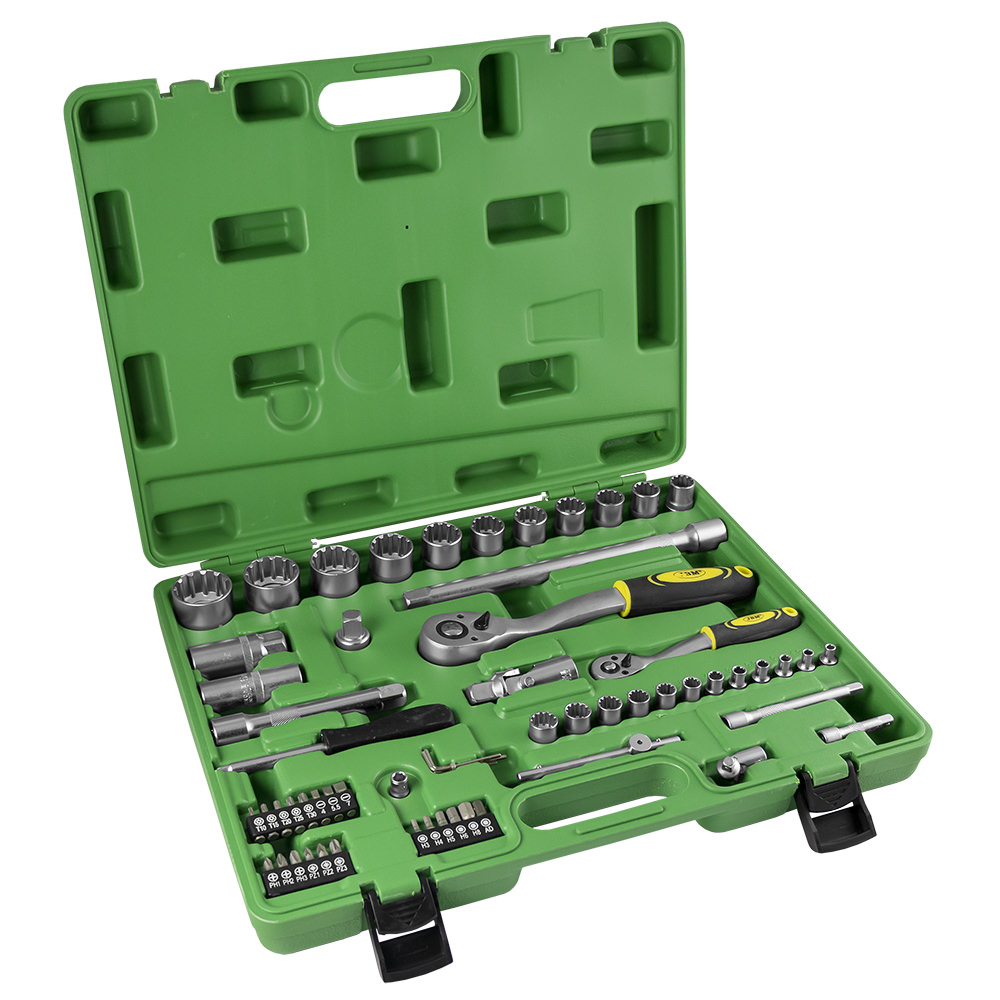 MALETÍN DE HERRAMIENTAS DE 60 PIEZAS CON VASOS SPLINE DE 1/2″ Y 1/4″ CINCADO