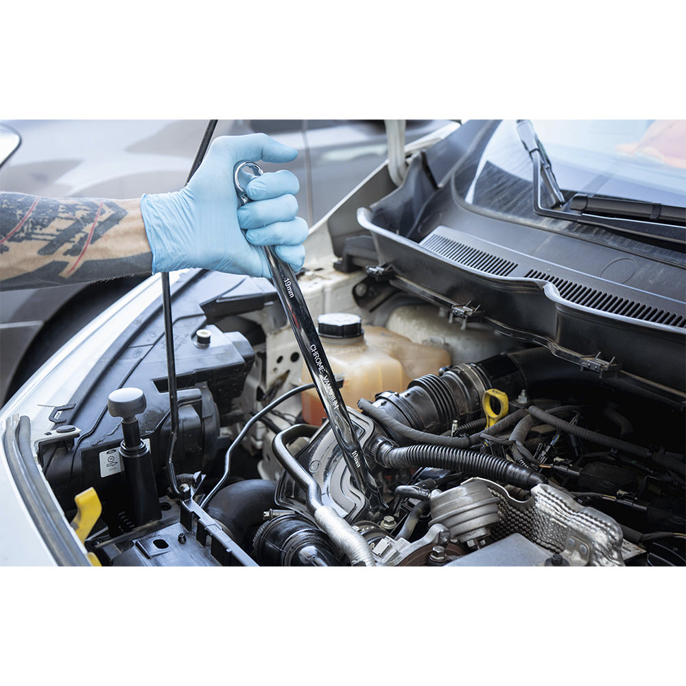 Este set de llaves con trinquete extralargas es ideal para completar tu juego de herramientas o para llenar de accesorios tu carro o caja de herramientas portátil. Su diseño permite un alcance superior y facilita el trabajo en áreas de difícil acceso. El set incluye 7 llaves de distintas medidas, brindando versatilidad y precisión para una amplia gama de aplicaciones. Perfecto para profesionales que requieren herramientas de alta calidad y resistencia. El modulo está diseñado con un acabado de tapa dura simulado en fibra de carbono, ofreciendo durabilidad y calidad. Inlcuye diferentes medidas: 8, 10, 12, 13, 14, 17, 19 mm.