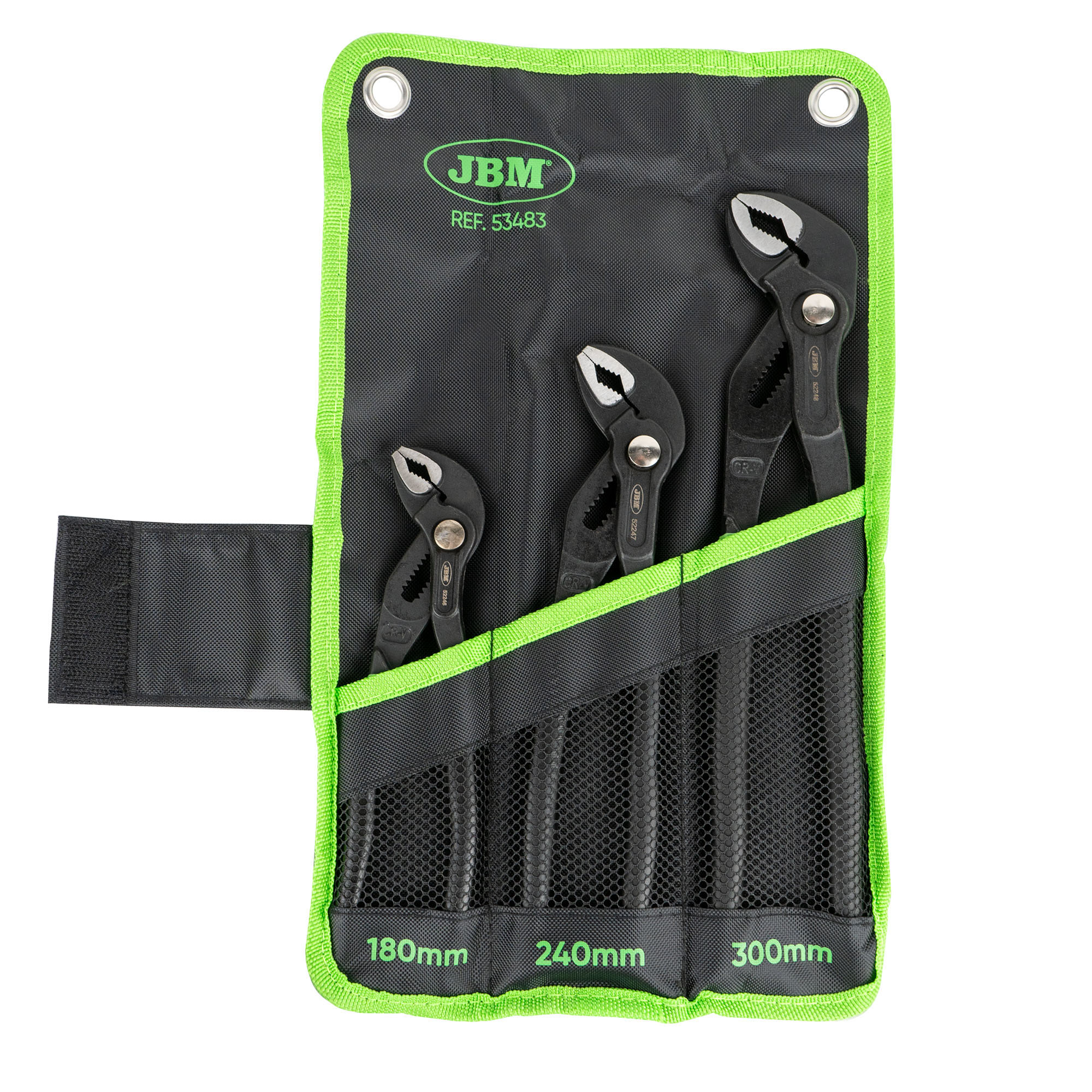 Estas alicates ajustables se distinguen de las demás por el botón de ajuste rápido integrado, fija la mordaza para que pueda trabajar con mayor rapidez y precisión. Mandíbula en forma de V para un agarre polivalente que se ajusta suavemente a todas las formas de material (plano, redondo, cuadrado, hexagonal). Las mandíbulas endurecidas por alta frecuencia aumentan la durabilidad de los dientes y las mordazas haciéndolas más duras y resistentes que el endurecimiento estándar. Fabricadas en aleación de acero de cromo vanadio (Cr-V) para aumentar la vida útil y la durabilidad de las herramientas. Este set contiene: Ref: 52246 – 180mm Ref: 52247 – 240mm Ref: 52248 – 300mm