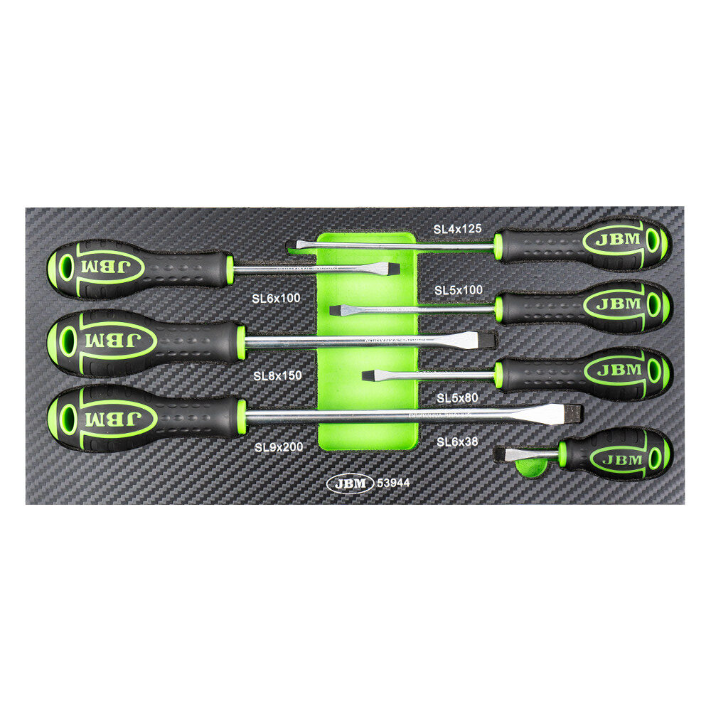 SET DE 7 DESTORNILLADORES PLANO CON MÓDULO EVA CARBONO