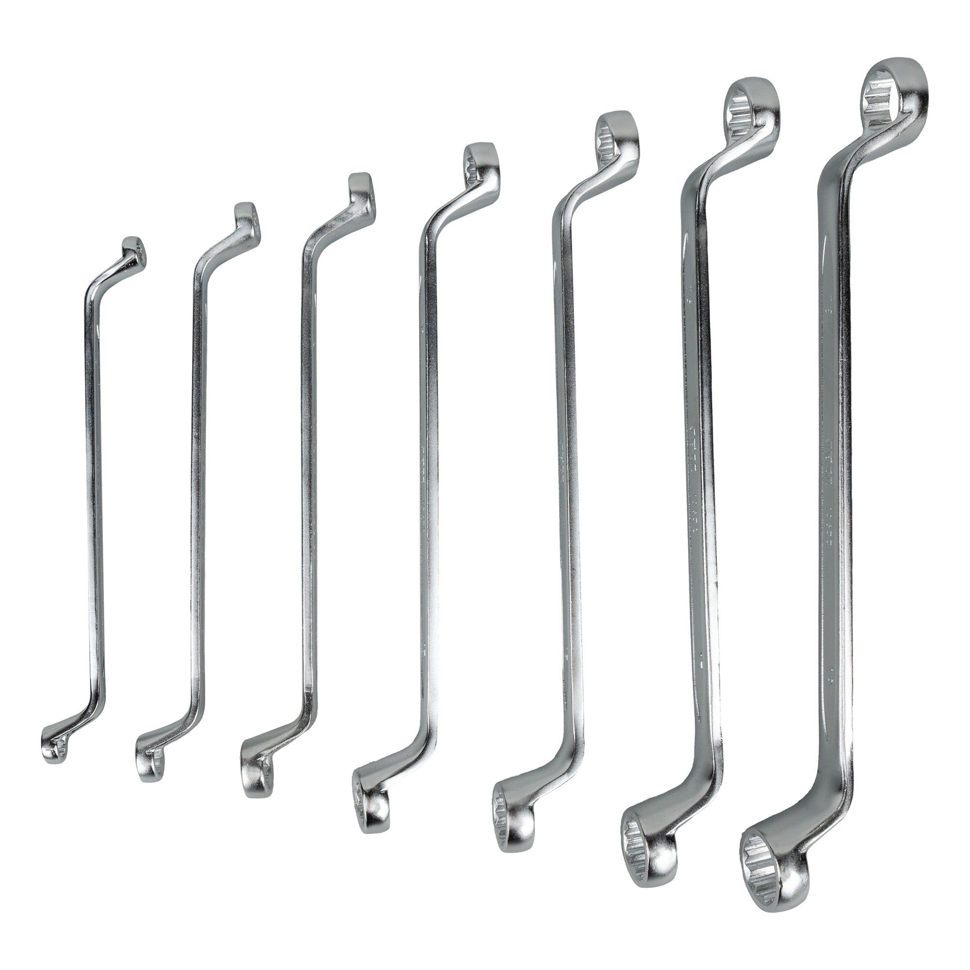 Este set es fácil de almacenar y transportar, ideal para profesionales que buscan versatilidad y calidad en su equipo de trabajo. Contiene 7 llaves acodadas de 2 bocas tipo estrella de varias medidas: 10X11, 12X13, 14X15, 16X17, 18X19, 6X7, 8X9.