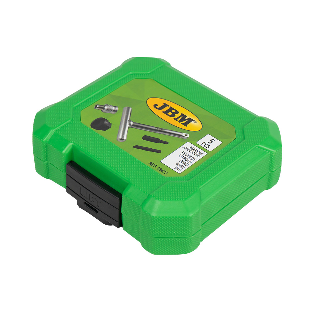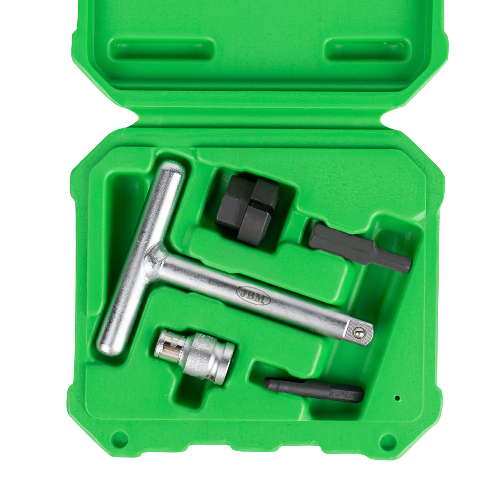 Incluye: – 1 llave 3/8″ en forma T – Adaptador de 3/8″ para cabezales de 10mm – Punta hexagonal de 10mm y cuadrado 1/4″ – Punta hexagonal de 10mm para tapón de cárter VAG – Vaso de 3/8″ para extracción de tapones cárter Compatible con los siguientes tapones OEM: – OEM 1830727 (ref. 53538) – OEM 11137605018 (ref. 53537) – OEM 06L 103 801 (ref. 13969) – OEM 9801444780 – OEM 1871598