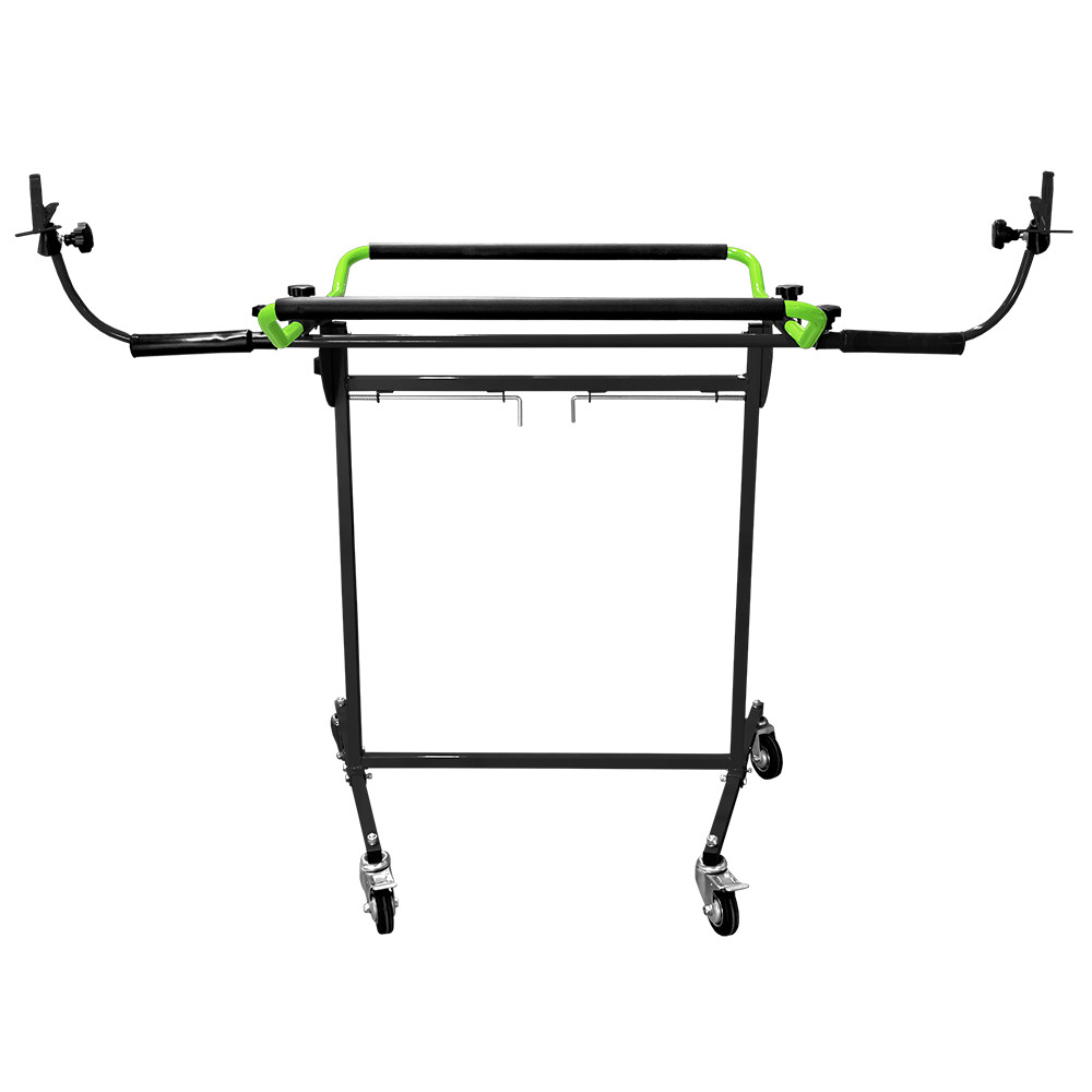 Ventajas: · Sostiene cualquier parachoques sin tocar la superficie pintada. · Facilita y agiliza las reparaciones y pinturas. · Giro en 90 grados permite acceder fácilmente a todas la superficie. · Cinco posiciones distintas de bloqueo. · Cuatro ruedas de calidad industrial, con bloqueo total para la estabilidad. Material: Acero con recubrimiento de polvo. 4 ruedas de 4 pulgadas (dos giratorias con freno).